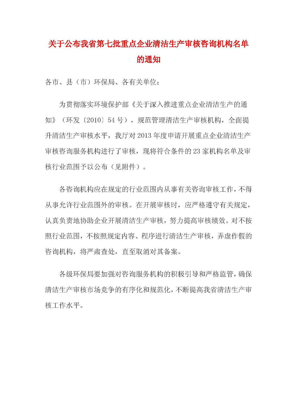 江蘇省第七批重點企業清潔生產審核咨詢機構